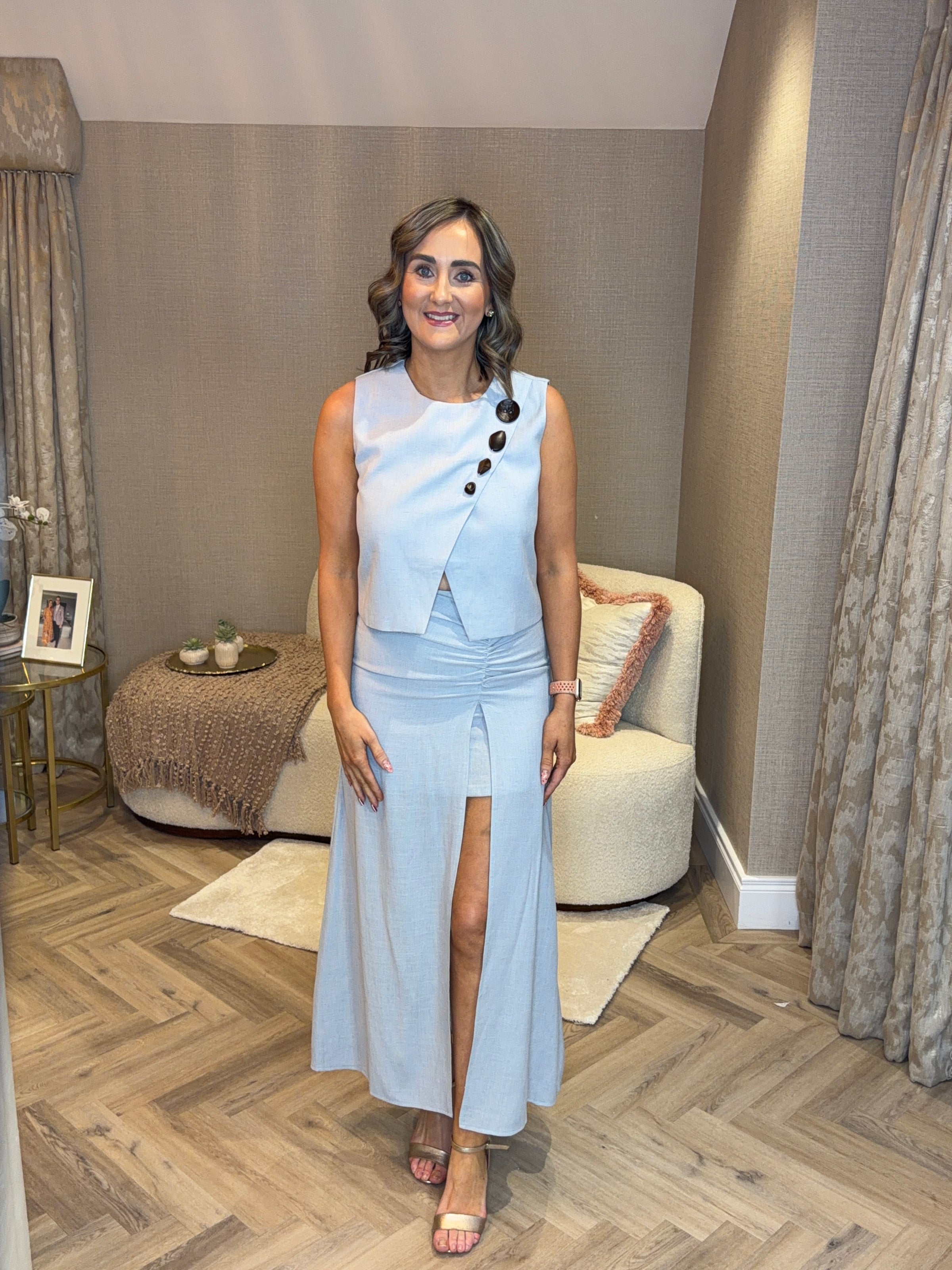 Blue skirt with ruched detail