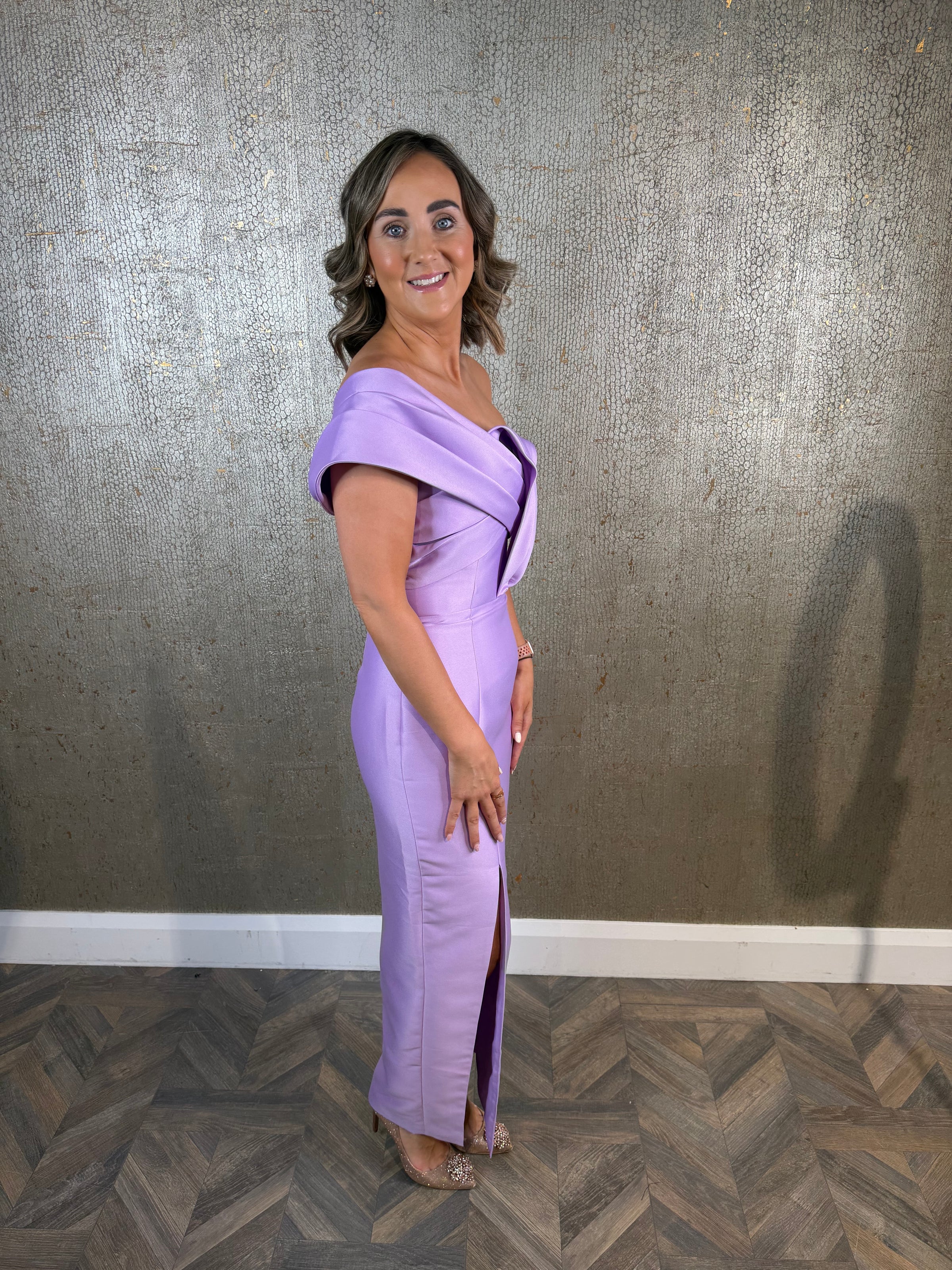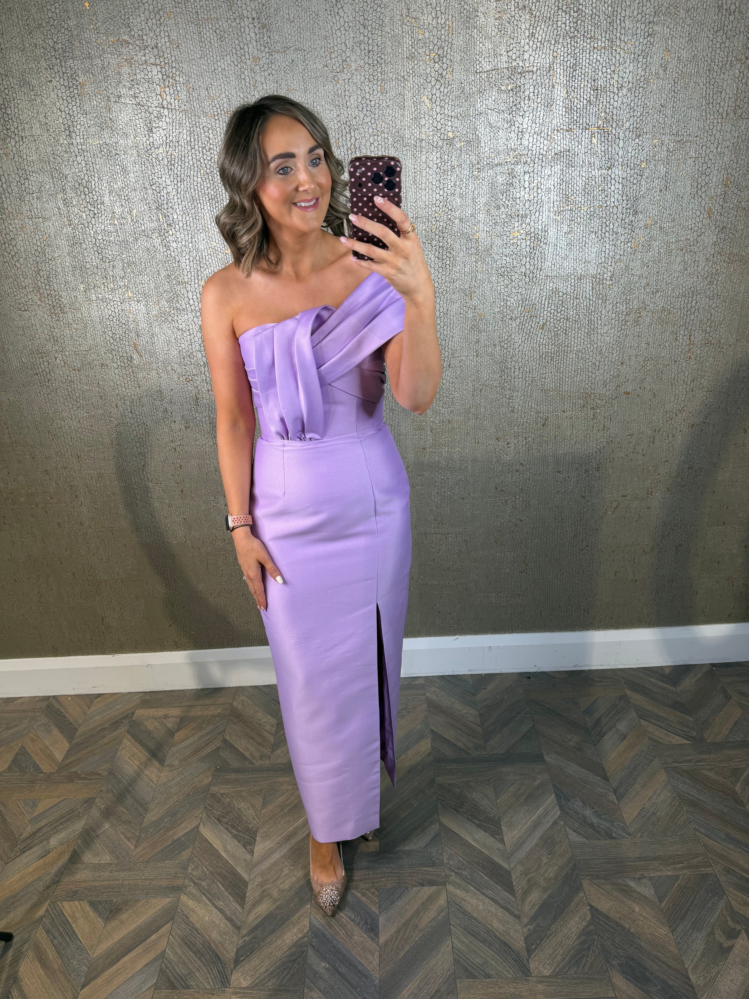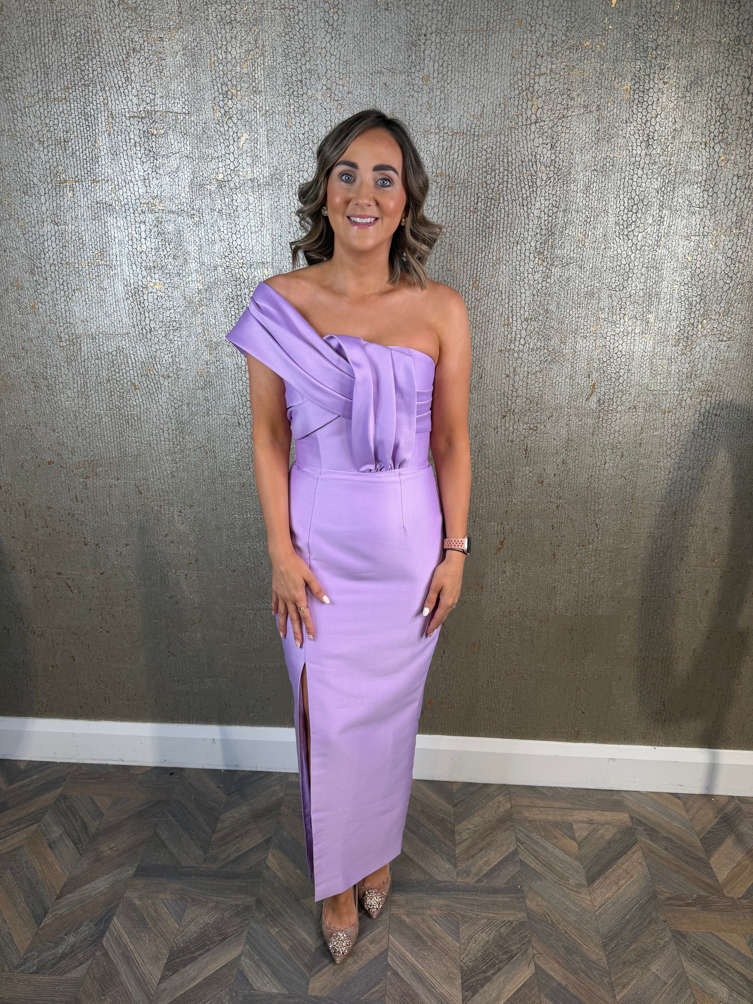 Purple one shoulder dress