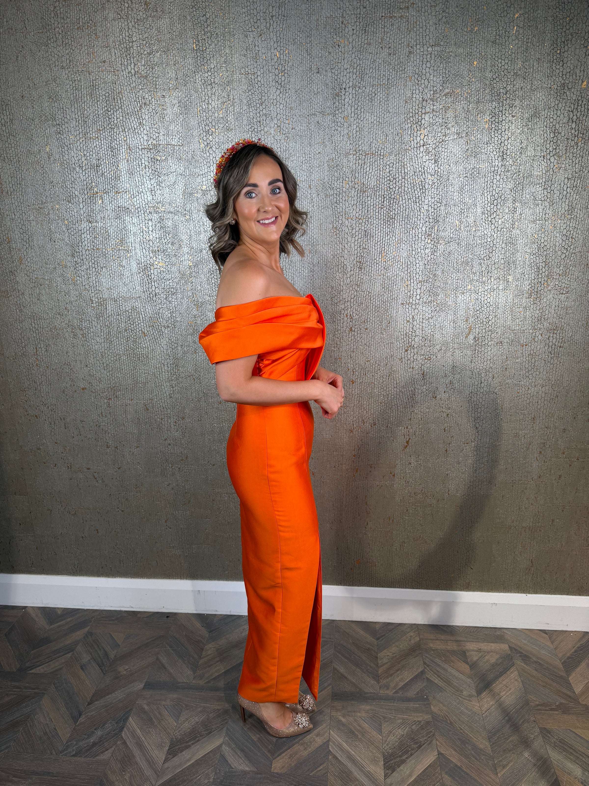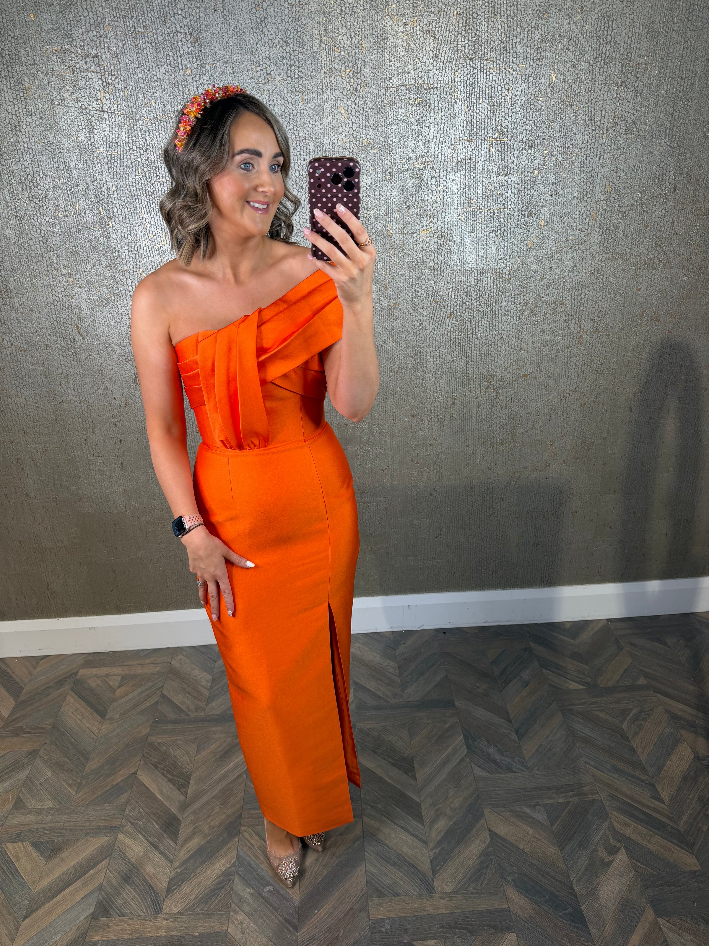 Orange one shoulder dress