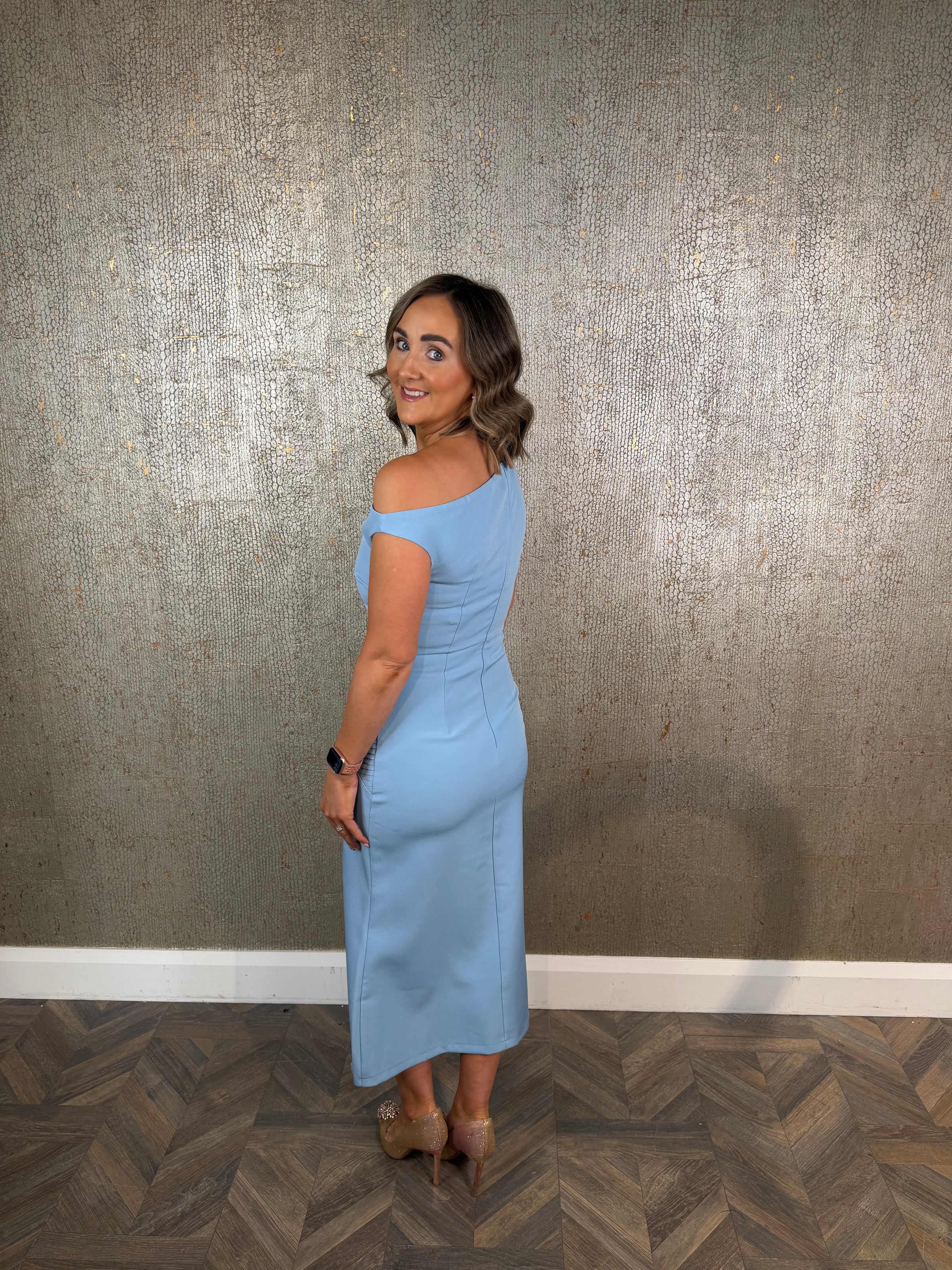 Blue off the shoulder style dress