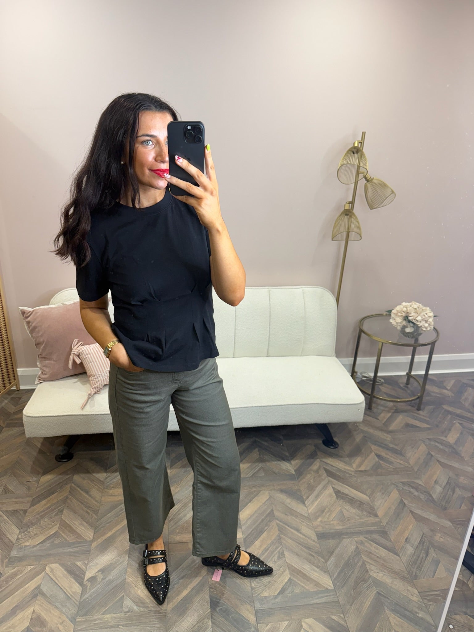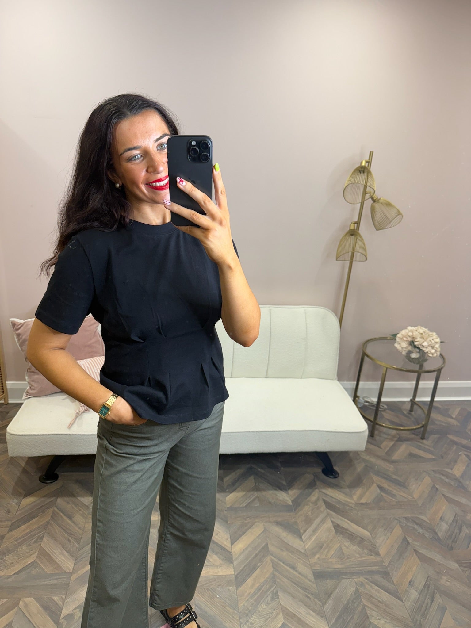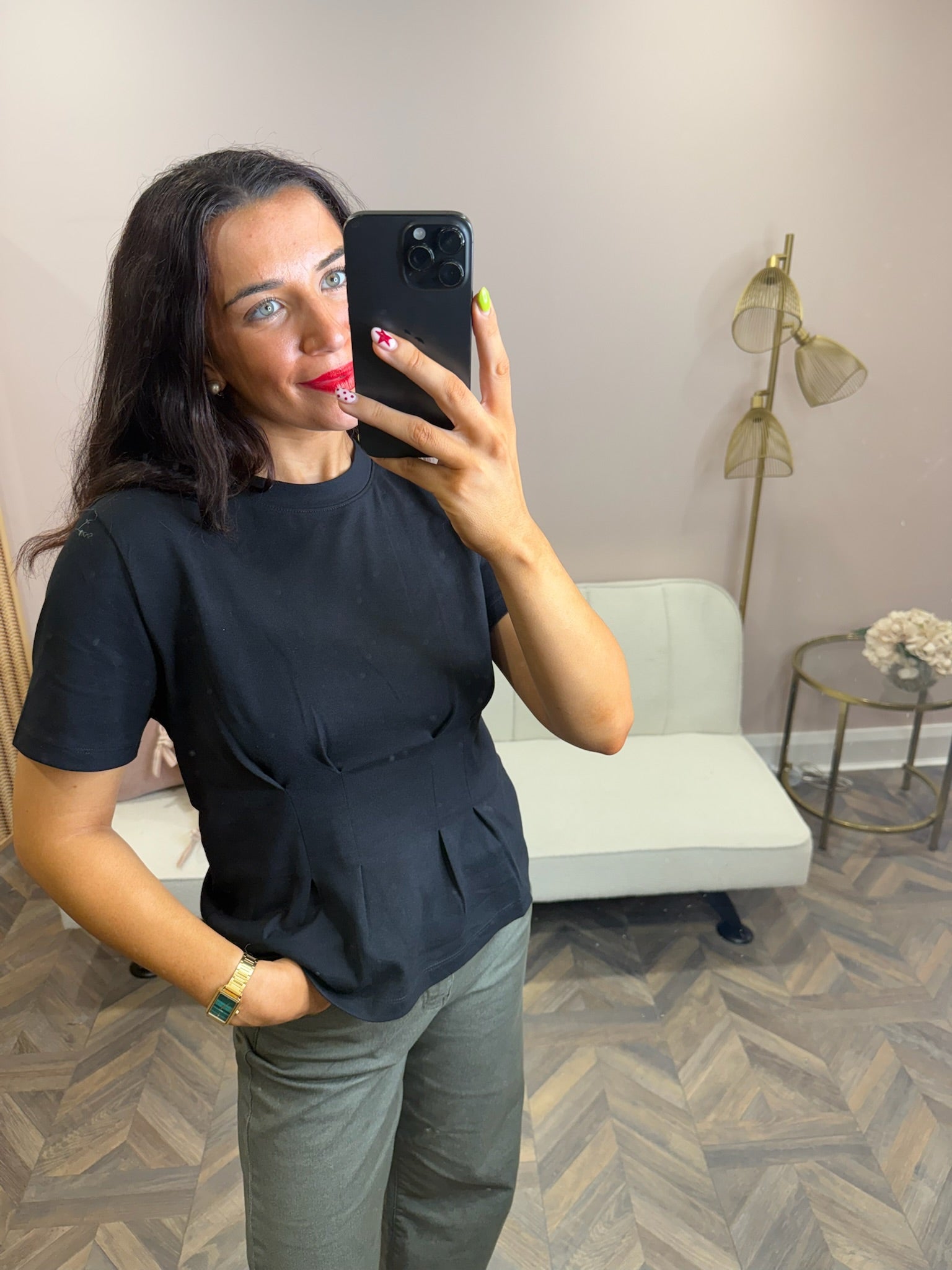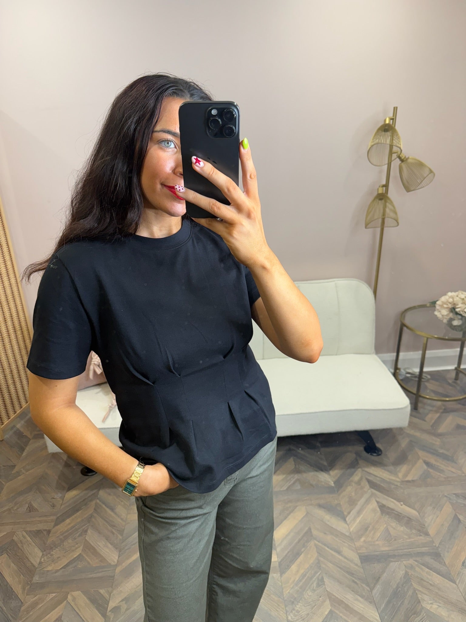 Black Fitted waist t-shirt