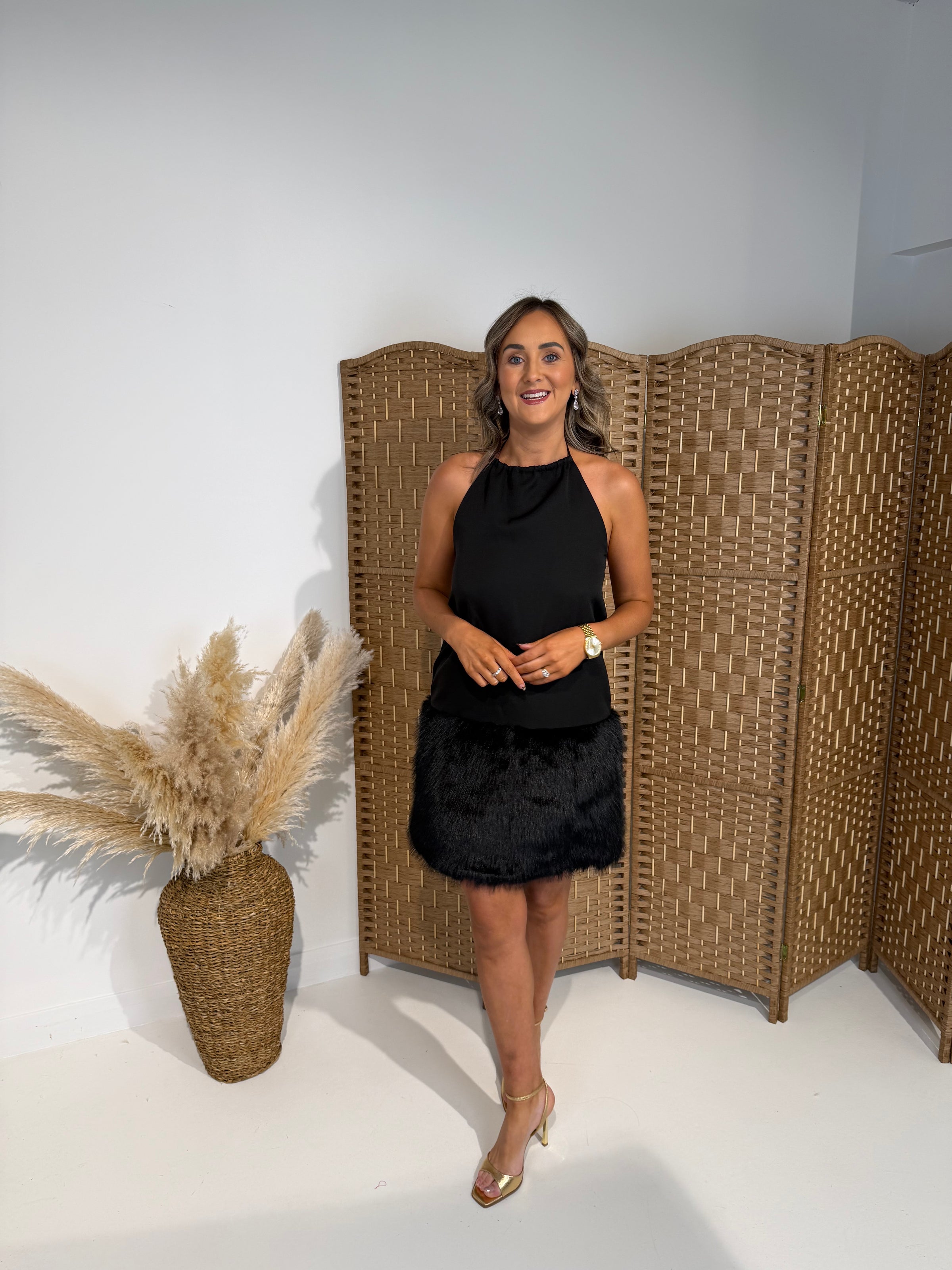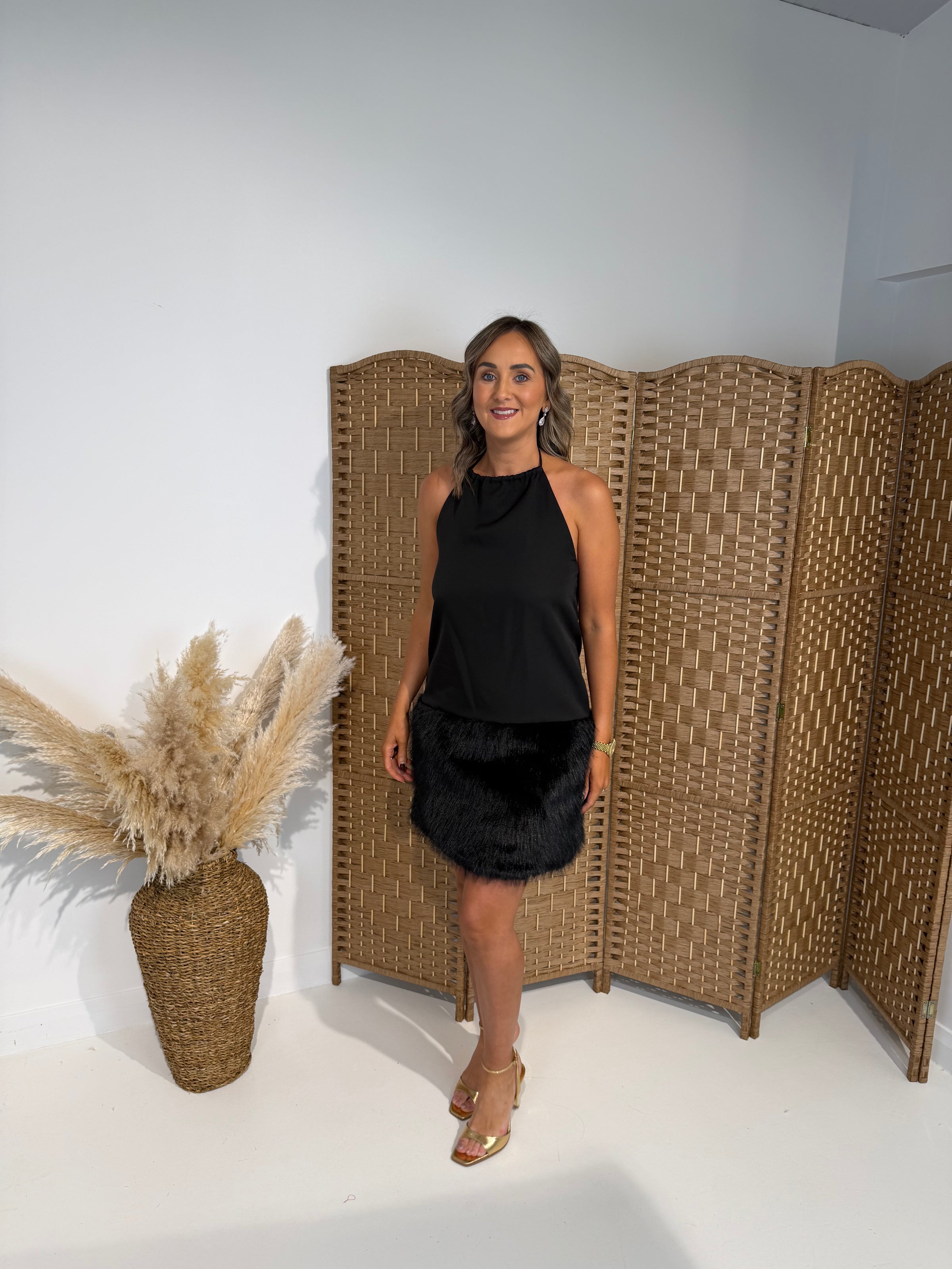 Black fur skirt dress