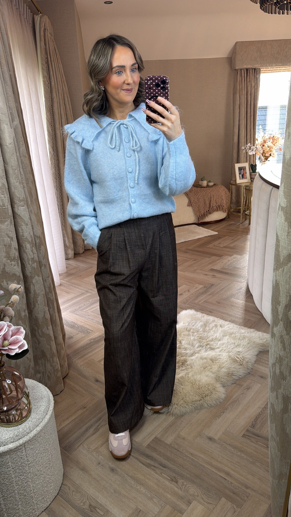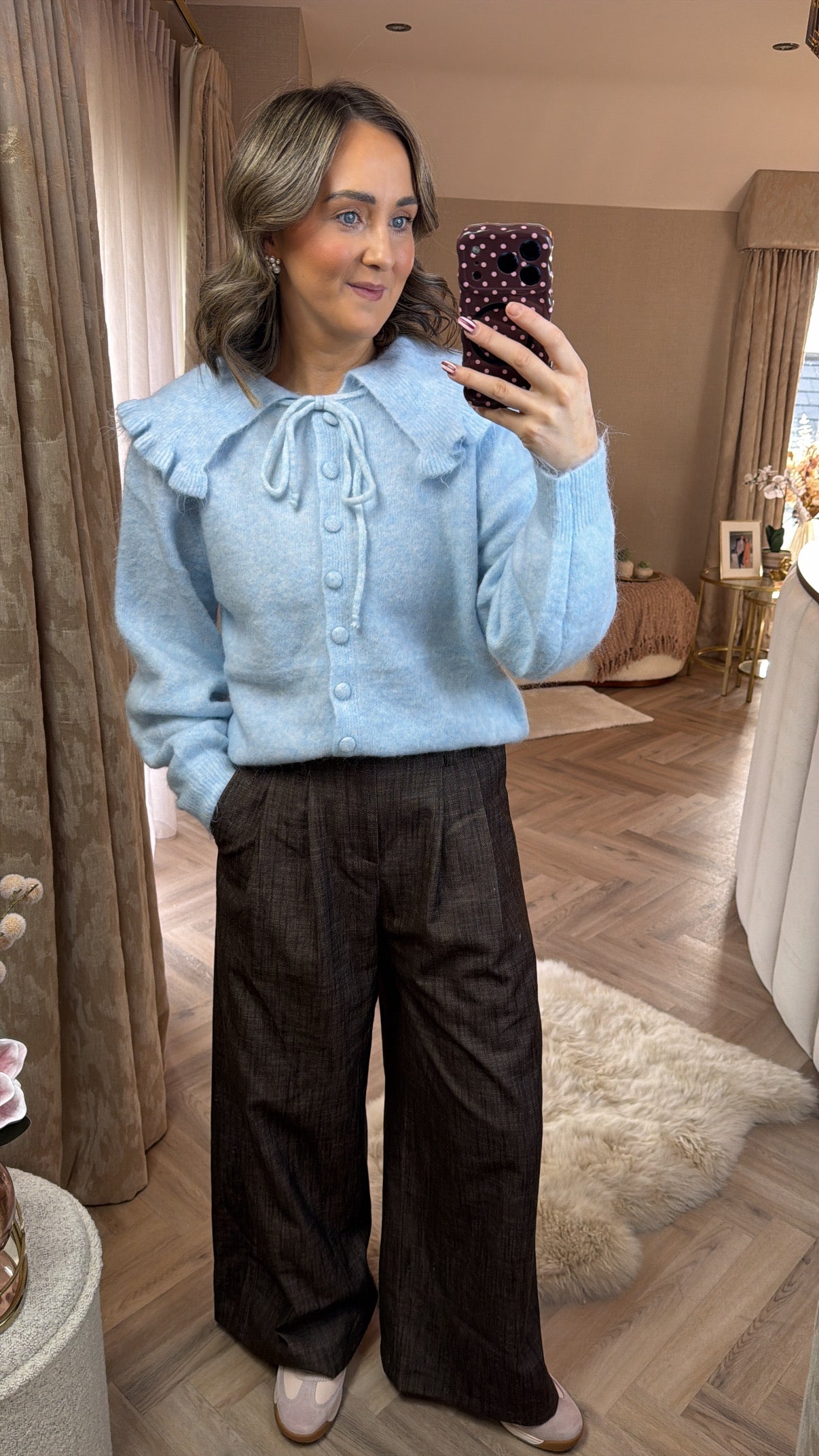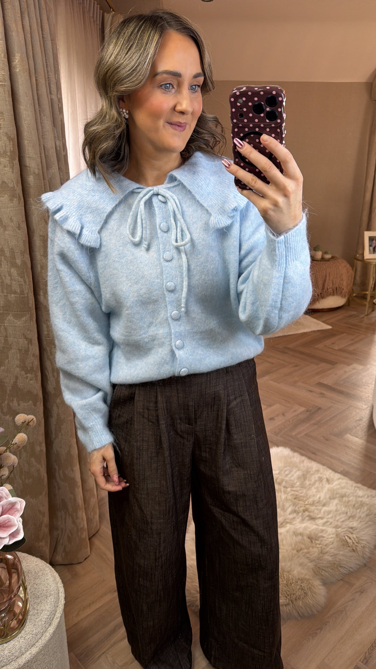 Blue cardigan with oversized collar detail