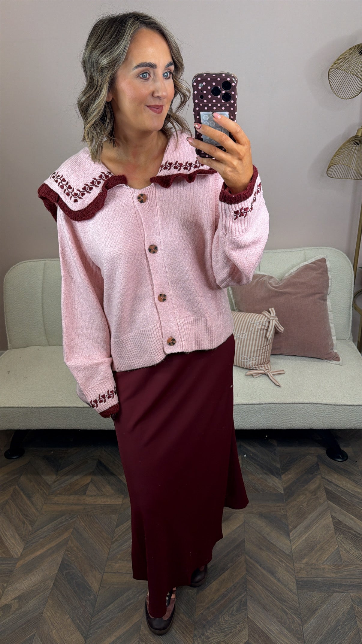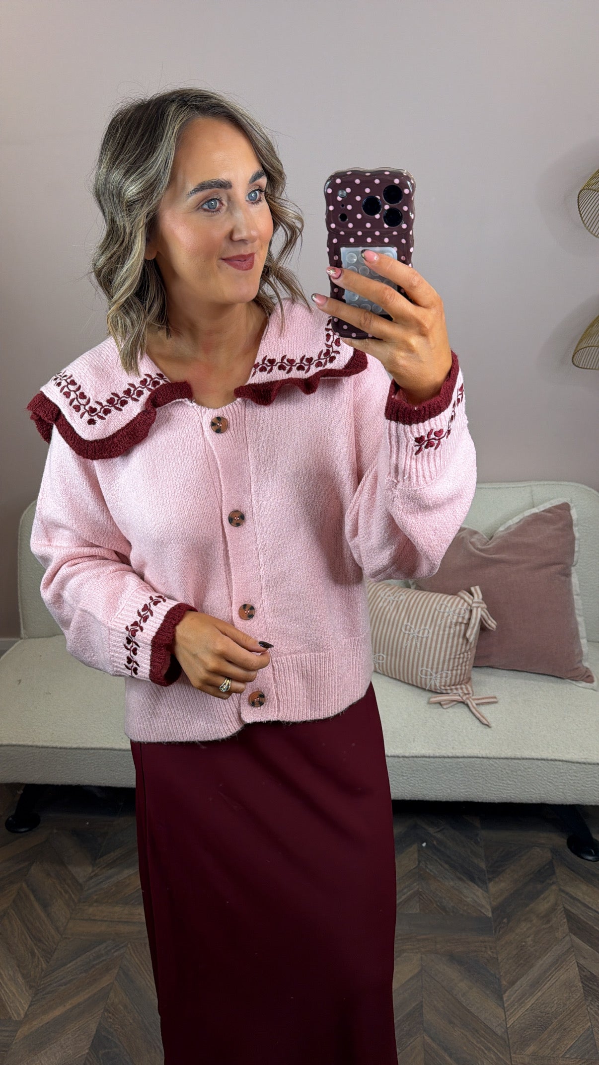 neon rose pink cardigan with oversized collar